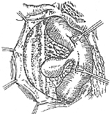(3)常用手术方法:手术中显露憩室有不同途径依憩室部位而定,位于十二指肠第三四部的憩室应将横结肠系膜切开,可显露憩室;在十二指肠降部内前侧的憩室,应解剖降部内前缘;在降部内后侧憩室,应切开十二指肠外侧腹膜,将十二指肠向左前方翻转以显露憩室。