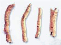 干燥根皮,呈卷筒状或双卷简状,长7~12厘米,直径1~2厘米,厚2~5