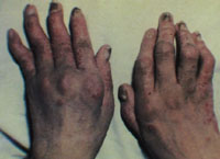 (6)血液动力学改变 红皮病患者可出现颈静脉压升高,肝脏肿大,下肢凹陷性水肿,心率增快等。这些症状随皮肤病变恶化而加重,随皮肤症状好转而减轻。若是老年患者,或有高血压、冠心病的患者,心脏功能较差,出现血液动力学改变,可致心力衰竭,甚至造成死亡。