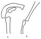 当肘关节伸直时,肱骨内、外上髁与尺骨鹰咀尖恰位于一条直线上,屈肘时则形成以鹰咀尖为顶角的等腰三角形,临床上常以此鉴别肘关节脱位或肱骨髁上骨折。肘关节在伸直的情况下,若受暴力如跌倒时一侧手掌着地,使肱骨下端向前移位、尺骨鹰咀则向后移,形成肘关节后脱位。当肘关节伸直,前臂处于旋后位时,臂与前臂并不在一条直线上,前臂的远侧端偏向外侧,二者之间形成一向外开放的钝角,称为提携角。