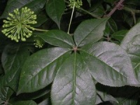 多年生攀援草本。块根扁圆形,顶部中央凹陷,直径可达15cm,外皮黄褐色。茎纤细,近叶柄处被淡黄色或白色短柔毛;卷须与叶对生,先端通常2叉。掌状复叶鸟趾状,互生,叶柄长1.5~3.5cm;小叶片7~9,披针形或窄披针形,中部者较长,长5~8cm,宽1~1.5cm,两侧的渐小,边缘具钝锯齿,两面脉上有短刺。花雌雄异株,雄花为腋生的聚伞圆锥花序,总花梗纤细,长达13cm;花萼基部常扁肿;花冠黄绿色,5深裂