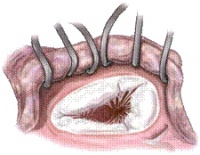 ③ Carpentier环固定术,Carpentier环是仿照三尖瓣环形态,用不锈钢制成的椭圆形半圆环,外用涤纶布包裹,有不同的号码。手术时沿三尖瓣环放置褥式缝线,再缝于适合号码的Carpentier环上。结紥固定后即可将扩大的前瓣和后瓣基部瓣环缩小,而使三尖瓣恢复对合良好。经改良的carpentier环,采用弹性材料制环,能适应心脏周期房室环的活动,减少缝合圈上的应力,从而减少撕脱的可能性。