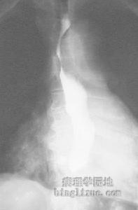 ①轻度病变:最初的损害是在黏膜的固有层中出现急性炎性细胞、嗜酸性粒细胞浸润和纤维素渗出,形成灶性坏死。在坏死的病灶中的纤维蛋白原和多形核细胞聚集形成特殊的顶极损害。