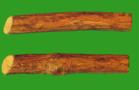 【性状】本品呈长圆柱形,稍扭曲,长 1~2m,直径 1~ 6cm。表面灰黄色或棕黄色,有浅纵沟及棕褐色残余粗皮的斑点。节部稍膨大,有1 枝痕。体轻,质硬,不易折断,断面黄色或淡黄色,皮部薄,木部宽广,有多层整齐环状排列的导管,射线放射状,髓部不明显。摩擦残余粗皮,有樟脑样臭。气微,味苦。