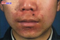 3、侵犯部位主要是“口罩区”,即口周、颏部及鼻侧。