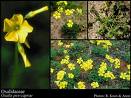 叶,绿黄色,聚生于茎顶,当触及时,叶柄及小叶像含羞草一样垂闭,小叶对生,长圆形,歪斜,长0.5-lcm,宽0.3-0.8cm,先端凸尖,基部截形,羽状脉在叶背面明显隆起,全缘。小时柄极短,总柄被疏毛,上面具一纵沟。伞形花序丛生于梢部,梗长2.5-5.5cm,被黄色茸毛,花小,黄色,果为长椭圆形的蒴果。花期5-10月,果期6-11月。