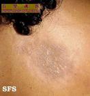 2、斑块状硬斑病较常见。最常发生于腹、背、颈、四肢、面。初呈圆或不规则淡红色或紫红色水肿性斑片,经数周或数月后扩大,直径可达1~10cm或更大,呈淡黄或象牙色。表面干燥平滑,具蜡样光泽,周围有轻度紫红色晕,触之有皮革样硬度,有时伴毛细血管扩张。局部无汗,亦无毛发。经过缓慢,数年后硬度减轻,渐渐萎缩,中央色素脱失。可侵及真皮及浅表皮下,但仍可移动。皮损的数目和部位不一,多数患者只有一个或几个损害,有时呈对称性。皮损在头皮时可引起硬化萎缩性斑状脱发。