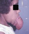血管瘤淋巴管瘤性巨舌(haemangiomatous and lymphangiomatous macroglossia):常呈不对称不均匀性增大。可以看到扩张的血管和囊状的淋巴管。深在的血管瘤和淋巴管瘤有时不易确诊。患者可有舌部发作性肿胀疼痛