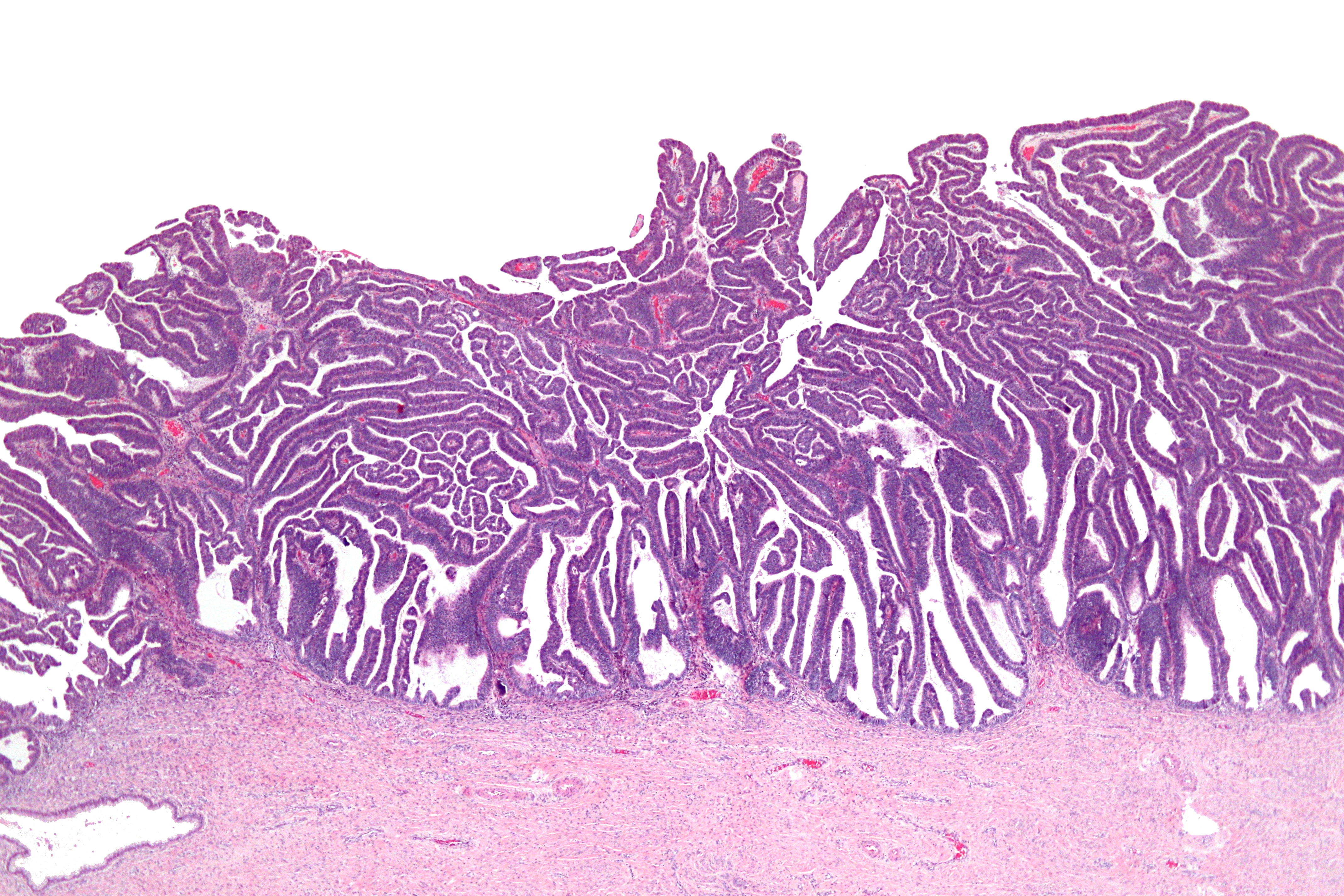 文件:Villoglandular adenocarcinoma - very low mag.jpg