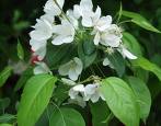 湖北海棠,高有3米。初蕾为粉红色,开放后为白色。有5片覆瓦状宽花瓣,有芳香。花直径5厘米。