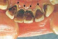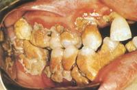 在口腔科日常门诊中,常有老年人因牙龈出血或口臭来就诊。经检查,确定发生这些症状的原因主要是牙结石。大部老年人都有程度不同的牙结石。牙结石是附着在牙齿表面的硬性斑块,其外形似黄色干石灰块,较坚硬,易使牙龈出血。牙结石大多位于不易清洁的牙面上,如下前牙舌面、上磨牙颊面。引起牙结石的原因很多,如炎症、损伤、不良卫生习惯、个体差异(唾液PH值高者易发生牙结石)等。