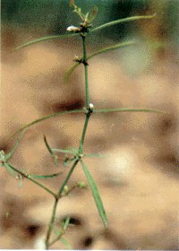 白花蛇舌草(学名:Hedyotis diffusa):一年生披散草本,高15-50cm。根细长,分枝,白以。茎略带方形或扁圆柱形,光滑无毛,从基部发出多分枝。叶对生;无柄;叶片线形至线状披针形,长1-3.5cm,宽1-3mm,先端急尖,上面光滑,下面有时稍粗糙,侧脉不明显;托叶膜质,基部合生成鞘状,长1-2mm,先端芒尖。花单生或成对生于叶腋,常具短而咯粗的花梗,稀无梗;萼简球形,4裂,裂片长圆状披针形,长1.5-2mm,边缘具睫毛;花冠白色,漏斗形,长3.5-4mm,先端4深裂,裂片卵状长圆形,长约2mm,秃净;雄蕊4,着生于冠简喉部,与花冠裂片互生,花丝扁,花药卵形,背着,2室,纵裂;子房下位,2室。柱头2浅裂呈半球形。蒴果扁球形,直径2-2.5mm,室背开裂,花萼宿存。种子棕黄色,细小,且3个棱角。花期7-9月,果期8-10月。