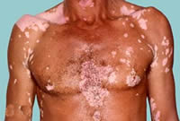 红皮病合﹐使全身或大部皮肤呈弥漫性潮红﹑肿胀﹑脱屑﹐有时有渗液。久之﹐皮肤外观红亮﹑干燥﹑粗厚﹐伴有瘙痒﹑干燥感或疼痛。