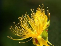 的细毛。花冠钟状,长至3cm,5裂,顶端卷折,表面疏生短柔毛,灰黄色至黄褐色。雄蕊较花冠为长,弯曲,露出花冠外,花药棕黄色,2室,孔裂。商品不带子房,花等及花梗也常除去。气微.味微苦。以花灰黄色、不霉、无其他混杂物为佳。
