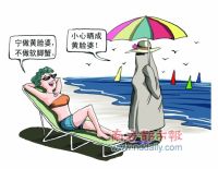 让我们再来看一例:“我有位女同事,非常注意防晒,目的当然是为了皮肤的美白。除了天天涂抹防晒霜,即使前面只有几米的路程有阳光,照样会打起防紫外线伞并快速通过。”陈小姐坦言。