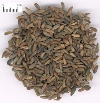 瘦果长倒卵形,两端平截,略扁微弯,长5-7mm,直径2-3mm。表面灰褐色或淡灰褐色,具多数细小黑斑,并有明显的纵棱线。先端较宽,有一圆环,中心有点状凸起的花柱残迹;基部狭窄,有圆形果柄痕。质硬,折断后可见子叶两片,淡黄白色,富汕性。果实无臭;种子气特异,味苦微辛,稍久有麻舌感。